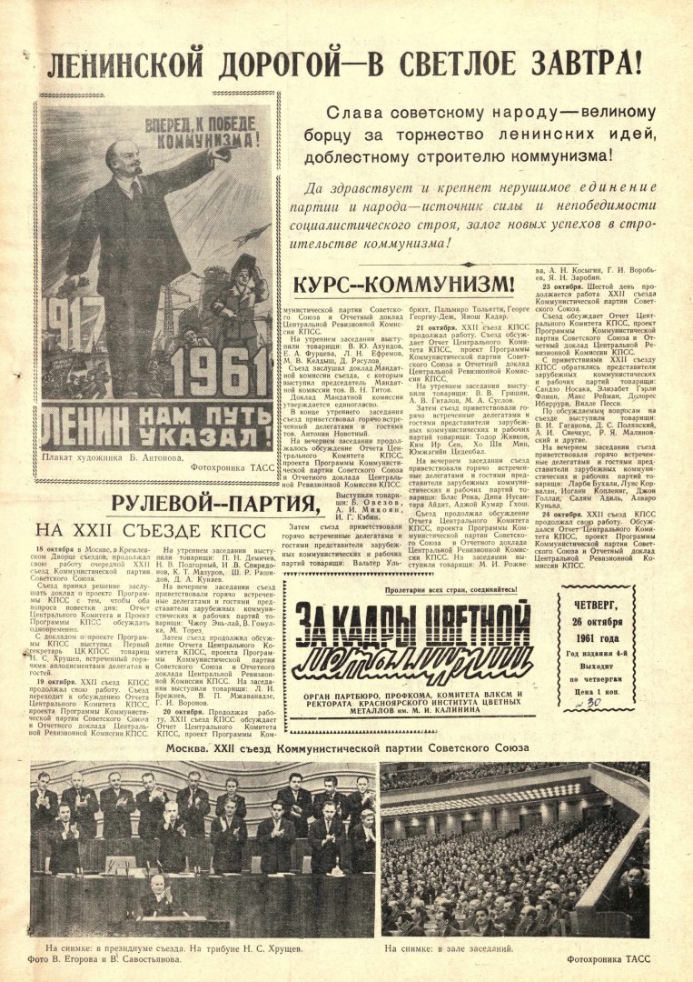 - Рулевой - партия, курс - коммунизм! : на XXII съезде КПСС. — С. 1.