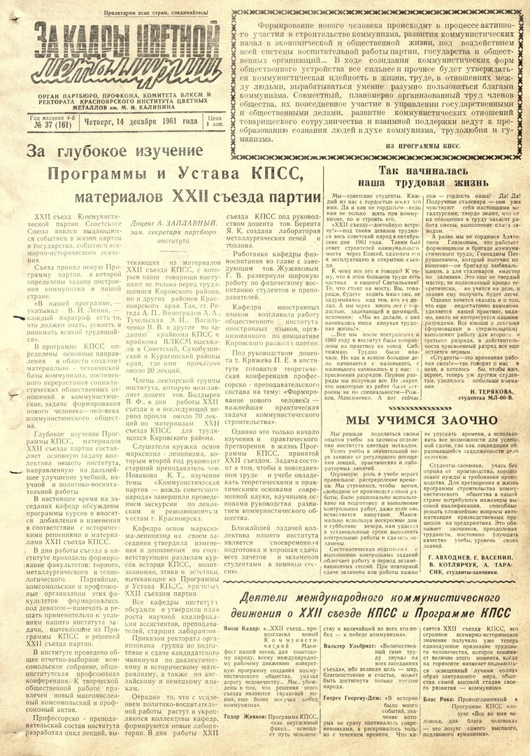 - За глубокое изучение Программы и Устава КПСС, материалов XXII съезда партии. — С. 1.