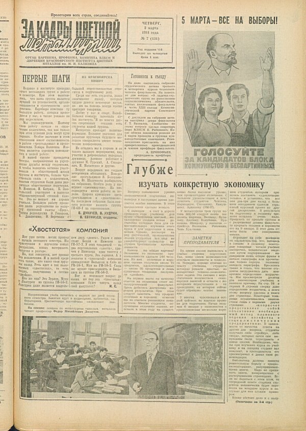 За кадры цветной металлургии : газета. 1961 г. № 7 (131) (2 марта)выпуск журнала/газеты