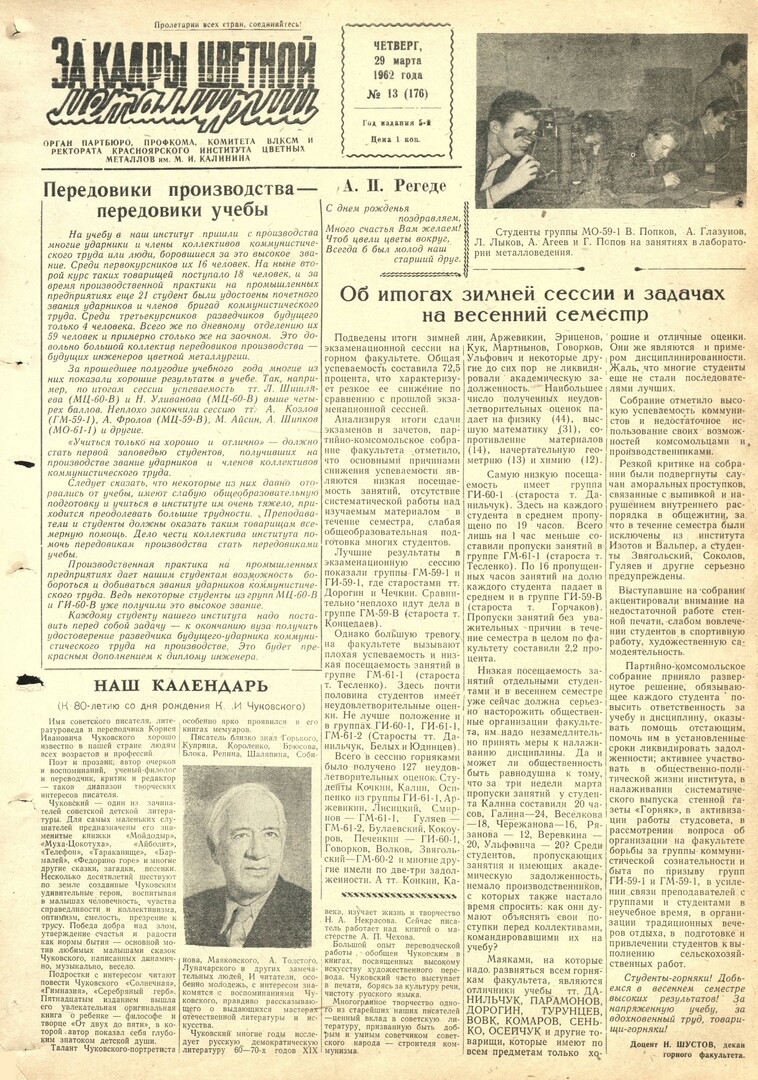 - Об итогах зимней сессии и задачах на весенний семестр : [декан горного факультета Н. В. Шустов о результатах зимней сессии]. — С. 1.