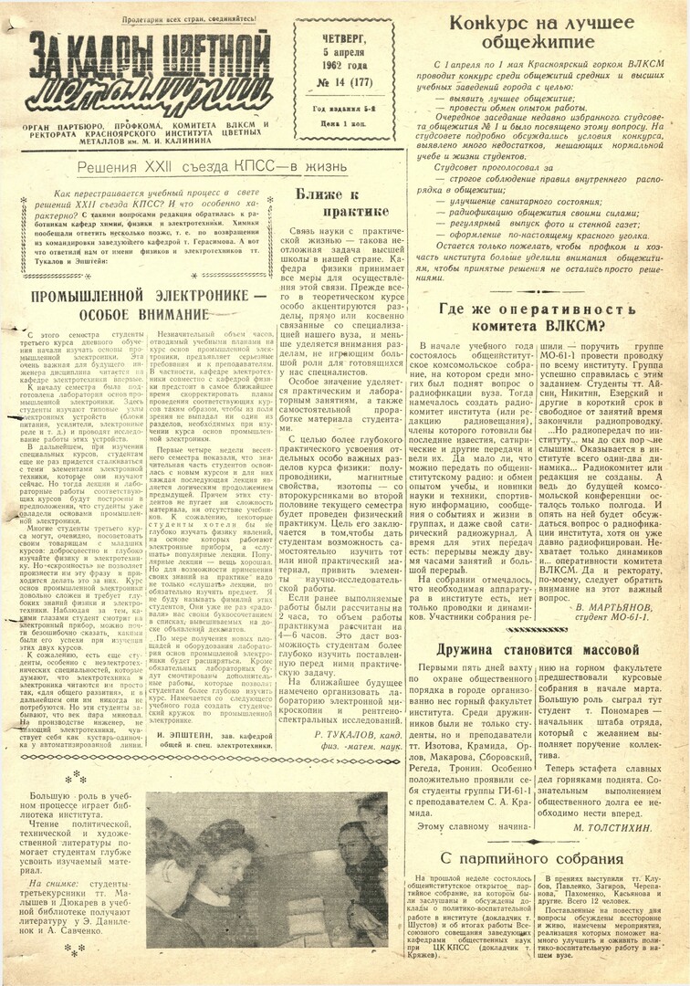 - Конкурс на лучшее общежитие : [от Красноярского горкома ВЛКСМ среди общежитий средних и высших учебных заведений]. — С. 1.