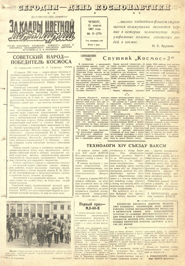- Советский народ - победитель космоса : (К годовщине полета Ю. А. Гагарина). — С. 1.