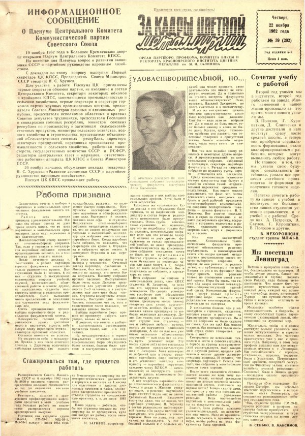 - Сочетая учебу с работой : [получение знаний литейного производства на заводе]. — С. 1.