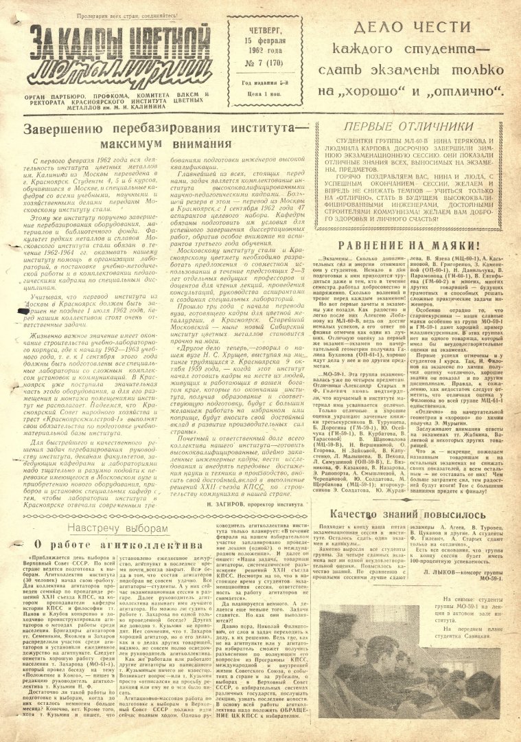 - Первые отличники : [студентки группы МЛ-60-В Нина Терякова и Людмила Карпова]. — С. 1.