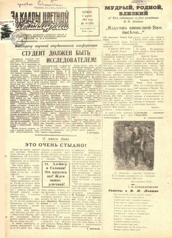 - Студент должен быть исследователем! : [не желание студентов участвовать в научно-исследовательской работе секций : подготовка к научной студенческой конференции]. — С. 1.