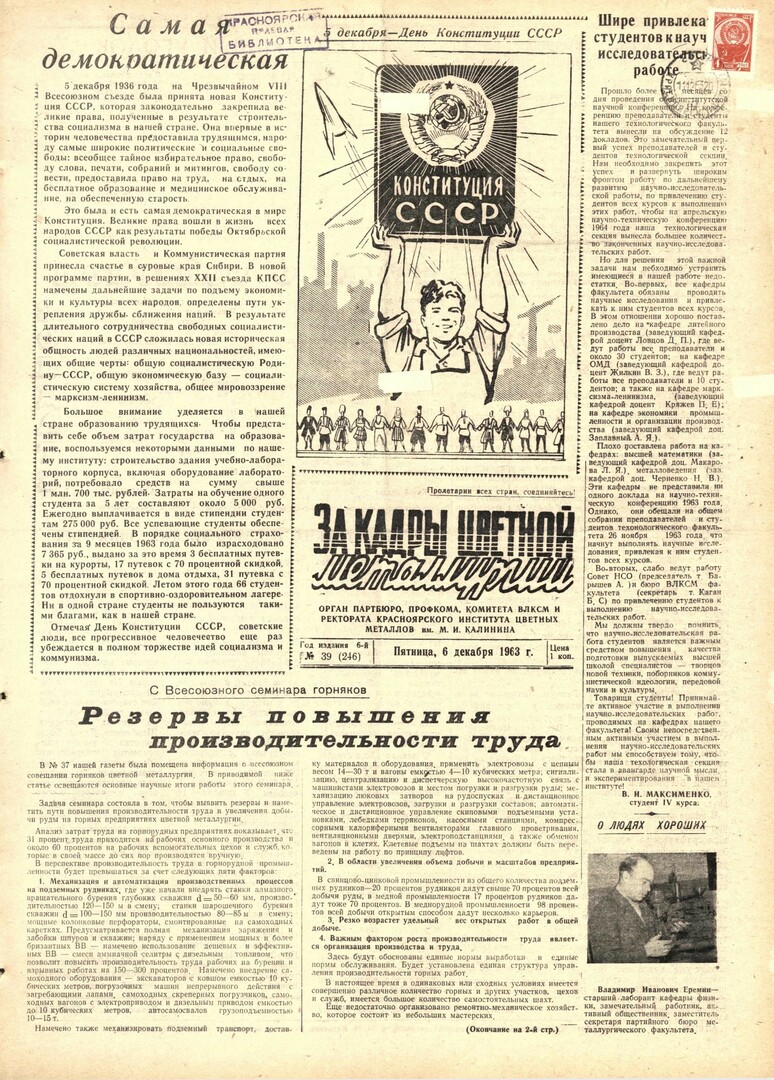 - Самая демократическая : [День Конституции СССР]. — С. 1.