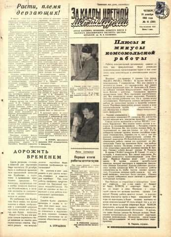 За кадры цветной металлургии : газета. 1963 г. № 41 (248) (19 декабря)выпуск журнала/газеты