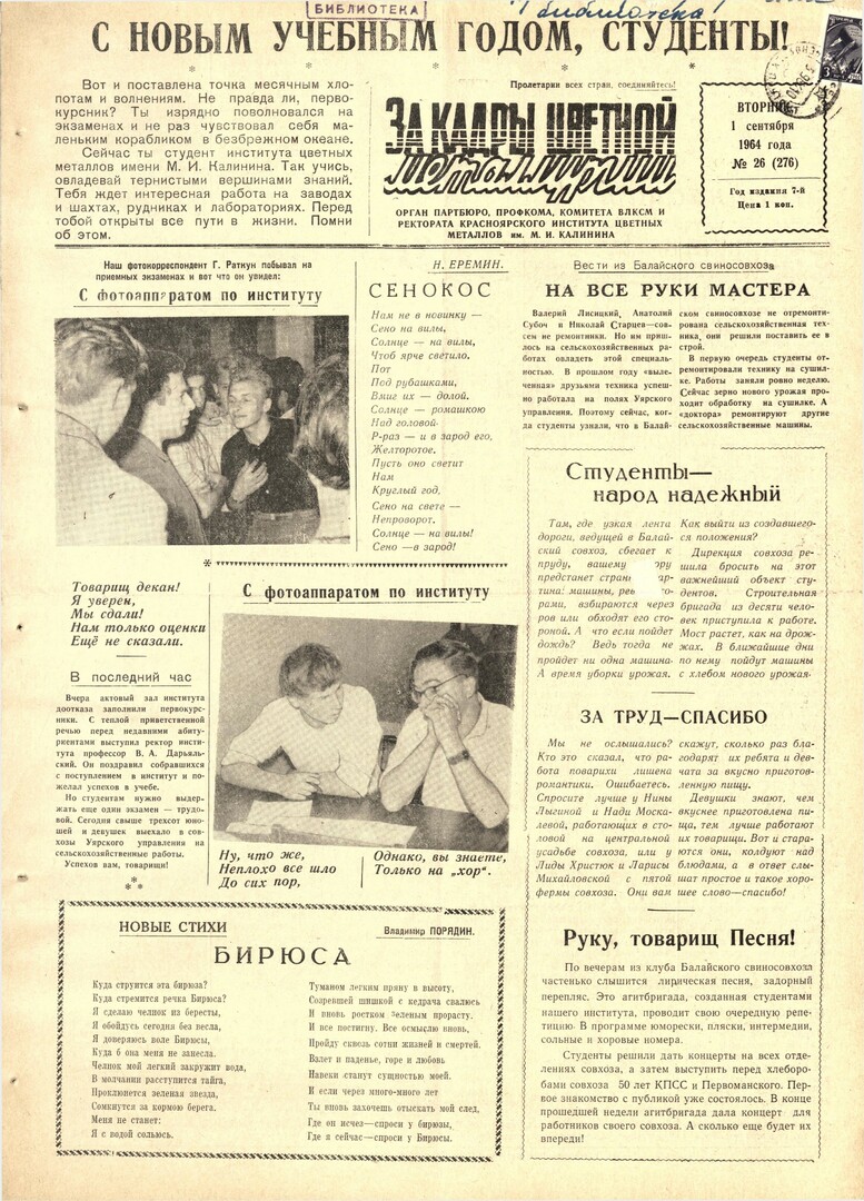 - С новым учебным годом, студенты! : [напутствие первокурснику]. — С. 1.