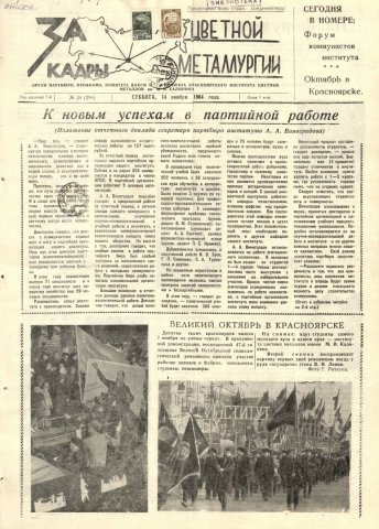 - Великий Октябрь в Красноярске : [заметка : на снимках: студенты цветмета на демонстрации и воспроизводство картины первых дней революции]. — С. 1.