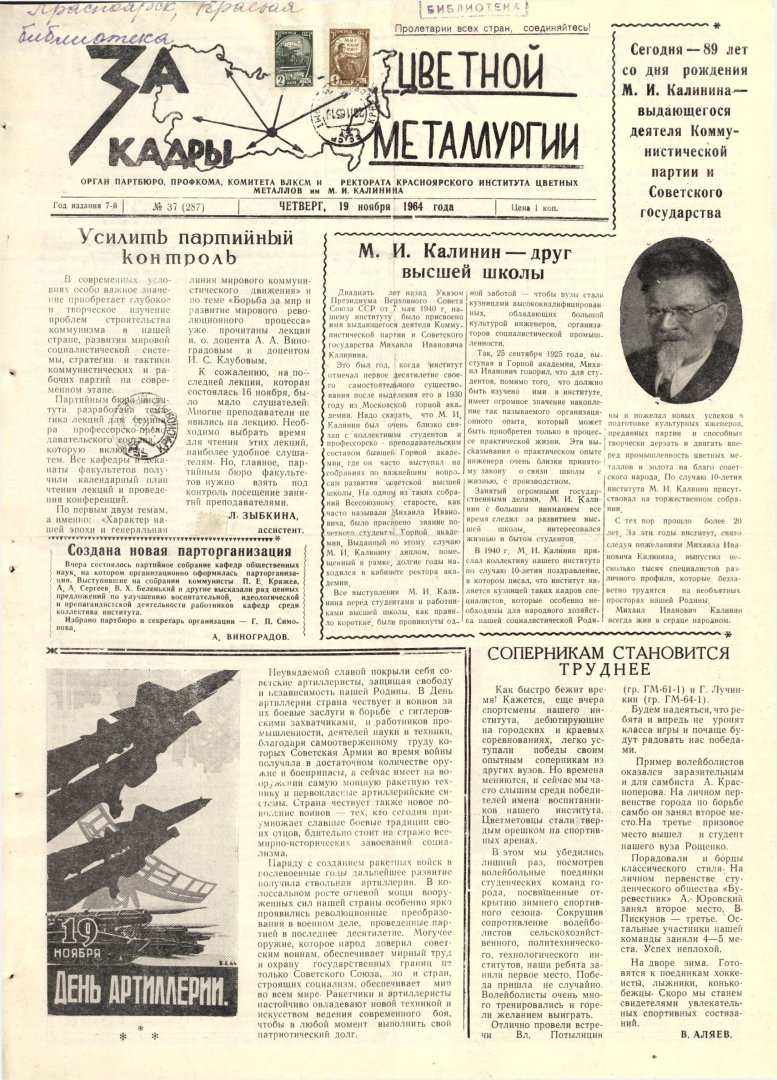 - М. И. Калинин - друг высшей школы : [о связи М. И. Калинина со студентами и преподавателями Горной академии : портрет]. — С. 1.