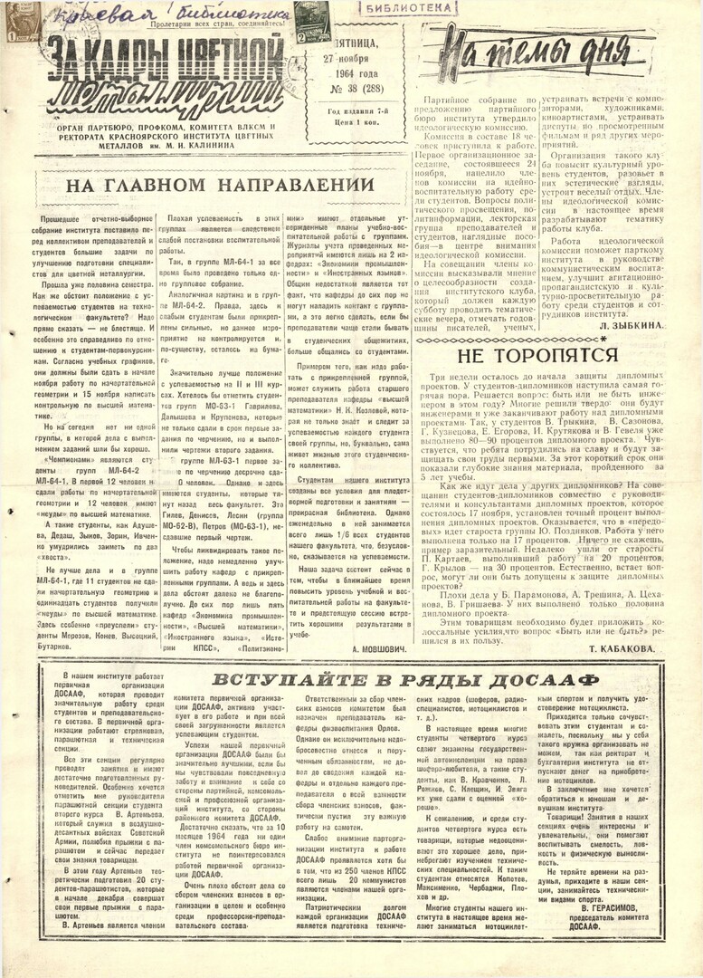- Вступайте в ряды ДОСААФ : [о работе первичной организации ДОСААФ института]. — С. 1.
