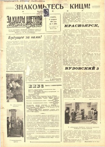 - Будущее за вами! : [наличие всех специальностей в одном вузе для подготовки инженеров для промышленности цветных металлов]. — С. 1.