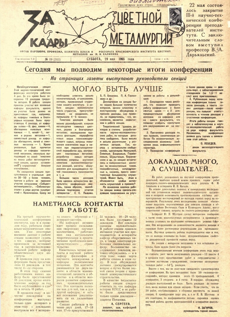 - Могло быть лучше : [итоги работы металлургической секции 3-ей научно-технической конференции института]. — С. 1.О. Лебедев