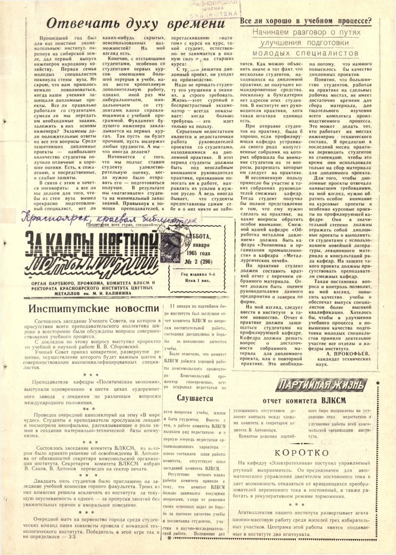 - Слушается отчет комитета ВЛКСМ : [на партийном бюро института по вопросам воспитательной работы (11 января 1965 г.)]. — С. 1.
