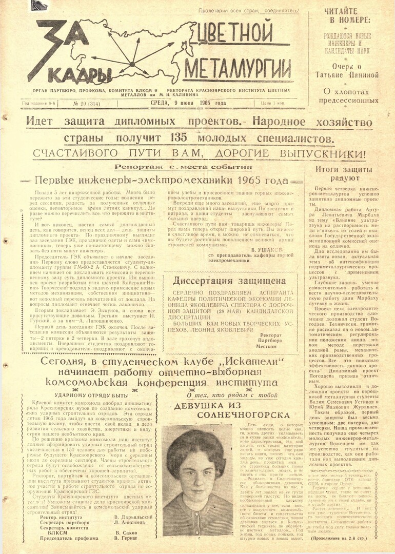 - Первые инженеры-электромеханики 1965 года : Репортаж с места события : [первый день заседания ГЭК]. — С. 1.