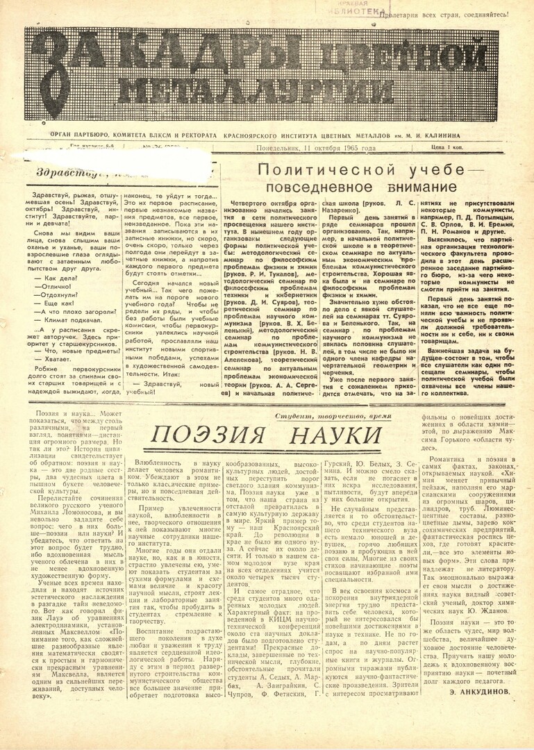- Поэзия науки : [эссе студента]. — С. 1.