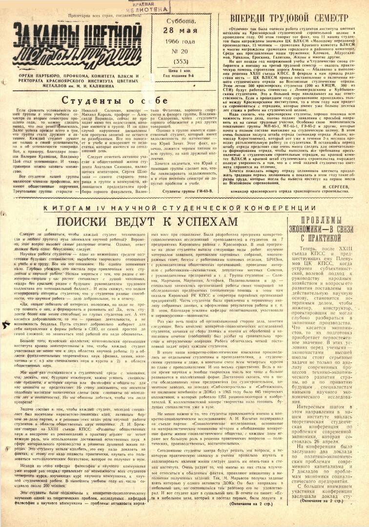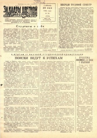 - Поиски ведут к успехам : к итогам IV научной студенческой конференции. — С. 1,2.