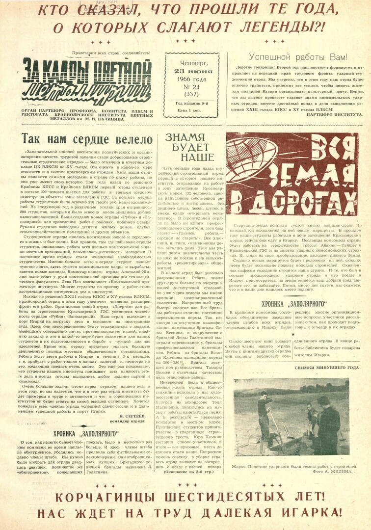 - В добрый путь! : [напутствие студенческому отряду в работе в Игарке]. — С. 2.