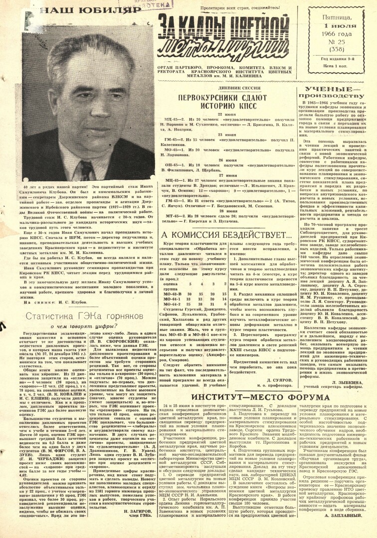 - Наш юбиляр : [40 лет в рядах партии - И. С. Клубов : на снимке: И. С. Клубов]. — С. 1.