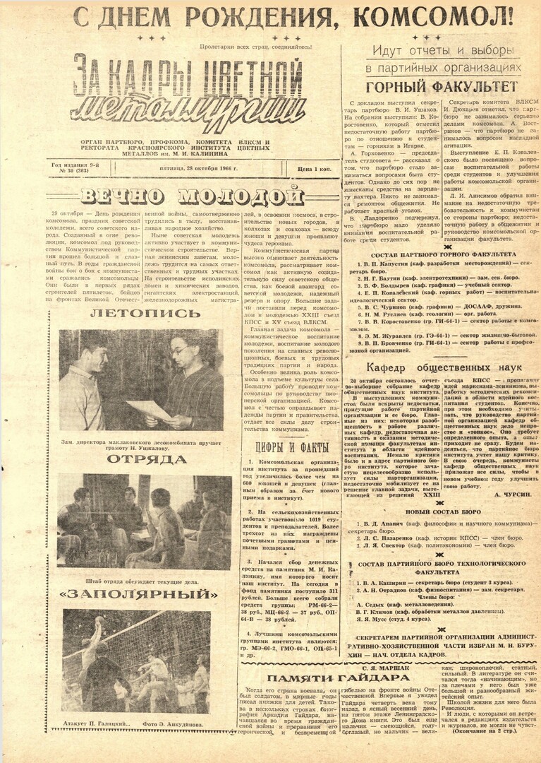 - Вечно молодой : [29 октября - День рождения комсомола]. — С. 1.