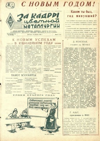 - К новым успехам в юбилейном году : [поздравление с Новым годом от ректората, профкома, парткома, комитета ВЛКСМ]. — С. 1.