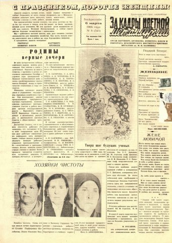 - С праздником, дорогие женщины! : [поздравление с Международным женским днем от ректората, профкома, партбюро и комитета ВЛКСМ]. — С. 1.