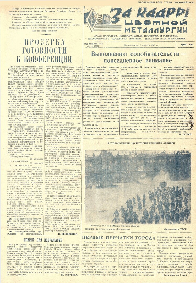 - Проверка готовности к конференции : [очередное заседание партбюро института о работе НСО и ходе подготовке к V научно-технической конференции]. — С. 1.