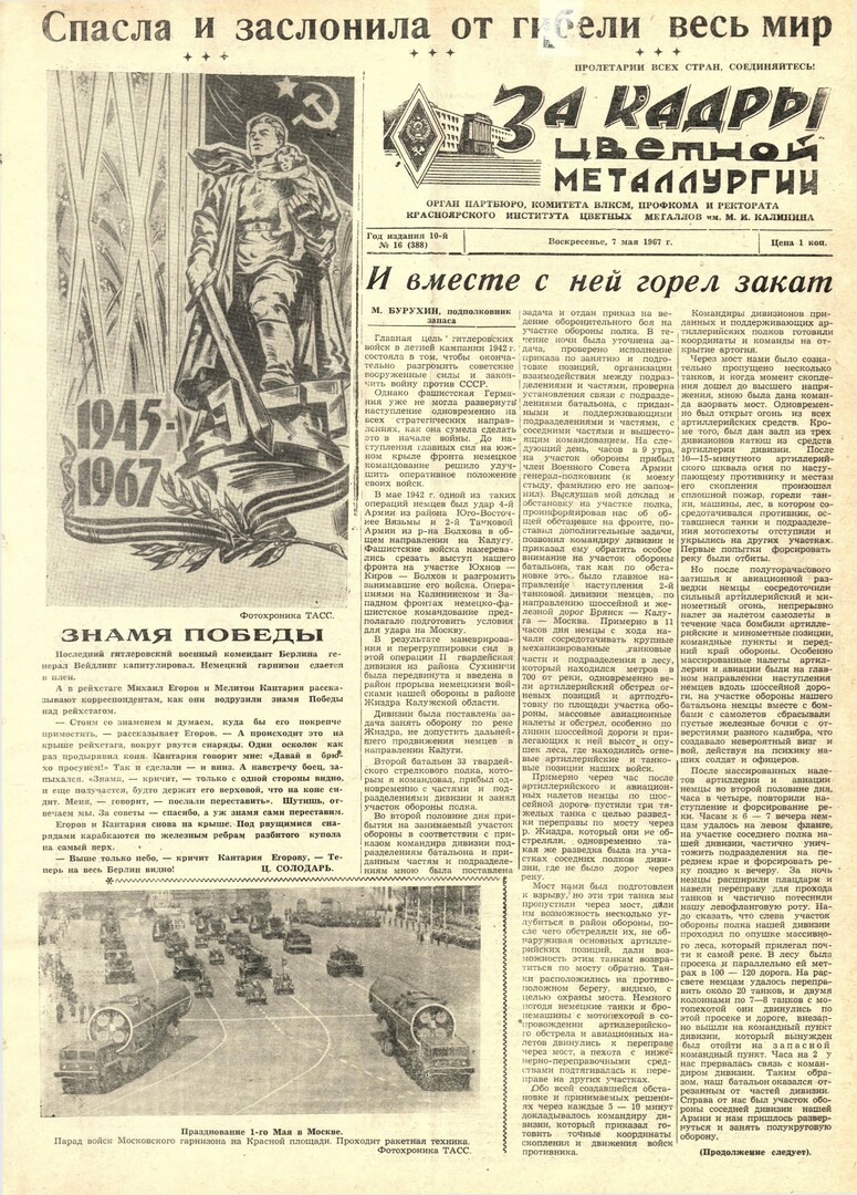 - Знамя Победы : [как М. Егоров и М. Кантария водрузили знамя Победы над рейхстагом]. — С. 1.