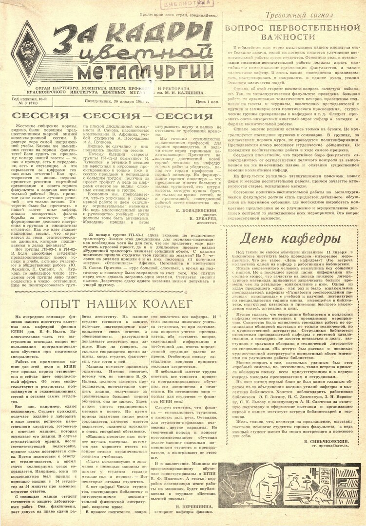 - Вопрос первостепенной важности : [о состоянии политико-воспитательной работы на металлургическом факультете]. — С. 1.
