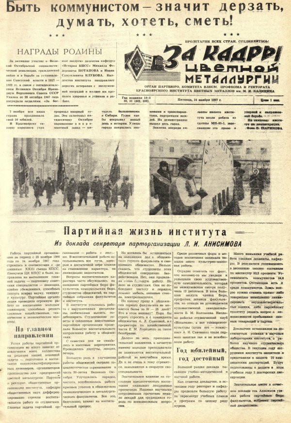 - Партийная жизнь института : Из доклада секретаря парторганизации Л. И. Анисимова. — С. 1.