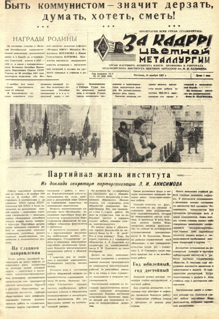 - [7 ноября - Красноярск] : [заметка : на снимках: институт на демонстрации]. — С. 1.