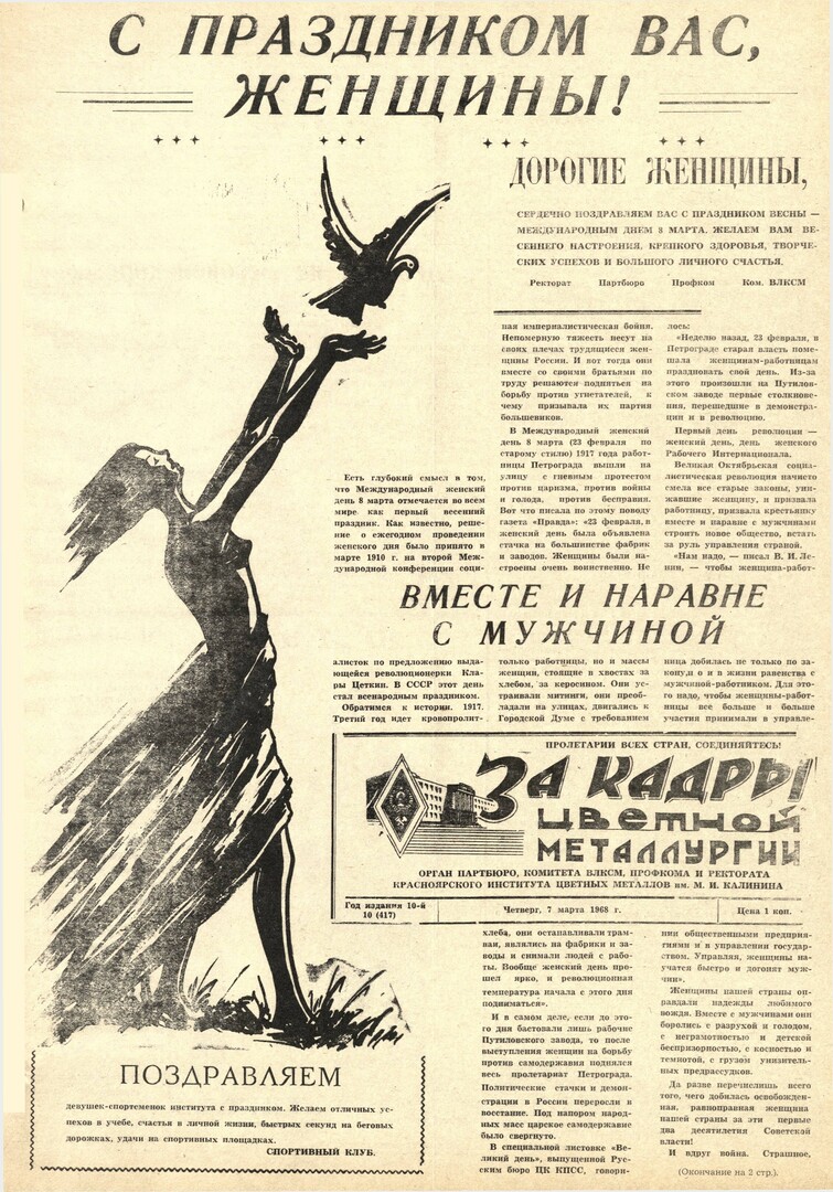 - Вместе и наравне с мужчиной : [из истории Международного женского дня : рисунок к заметке]. — С. 1,2.