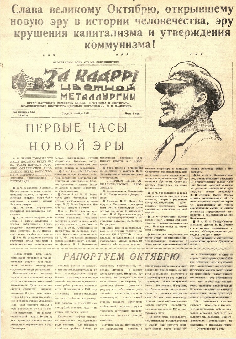 За кадры цветной металлургии : газета. 1968 г. № 26 (427) (6 ноября)выпуск журнала/газеты