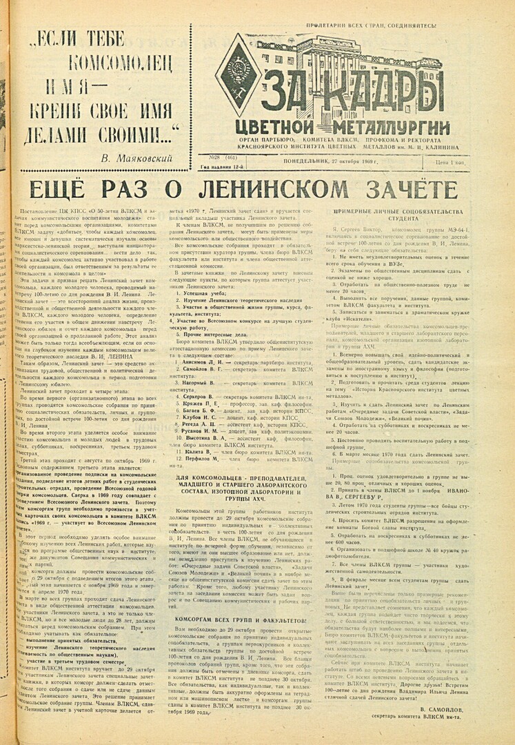 - Ещё раз о Ленинском зачете : [от секретаря комитета ВЛКСМ института]. — С. 1.