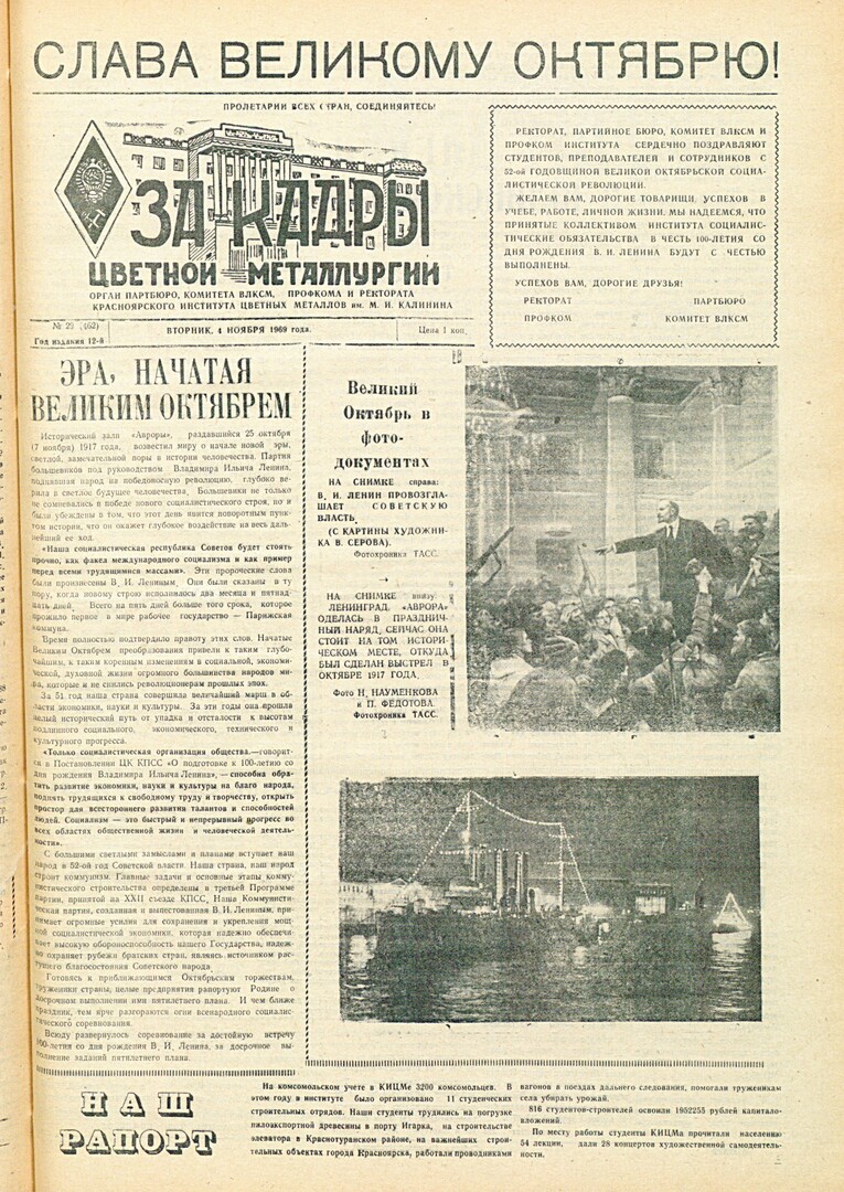- [Слава Великому Октябрю!] : [поздравление от ректората, партбюро, профкома, комитета ВЛКСМ]