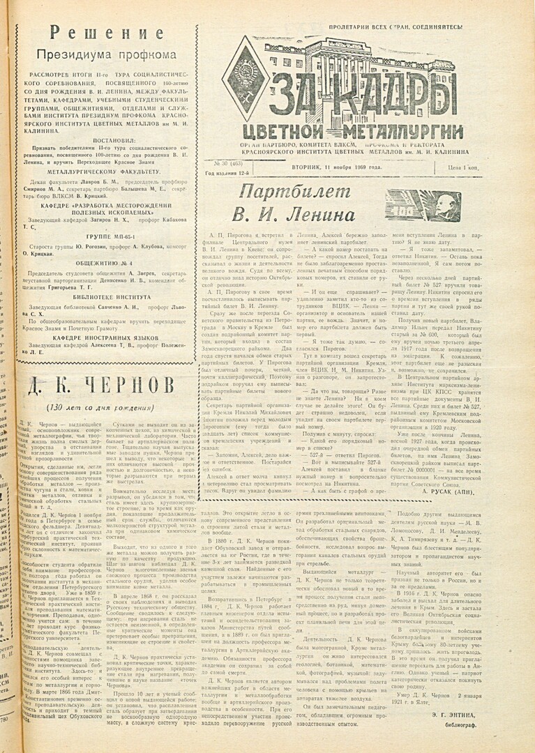 - Решение Президиума профкома : [итоги II тура социалистического соревнования]. — С. 1.
