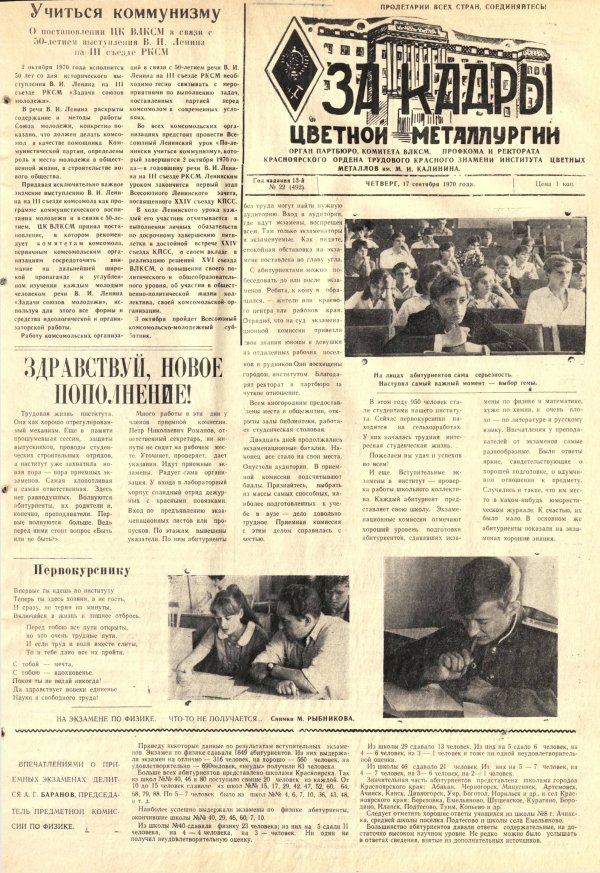 - Здравствуй, новое пополнение! : [итоги приемных экзаменов]. — С. 1.