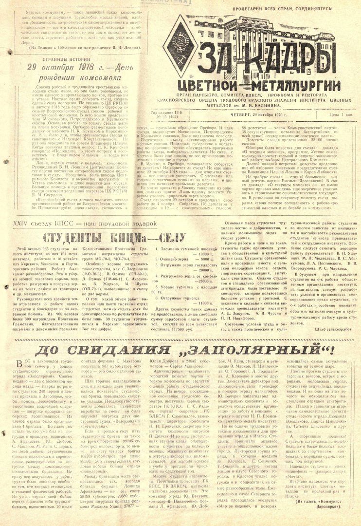 - 29 октября 1918 г. - День рождения комсомола : страница истории. — С. 1.