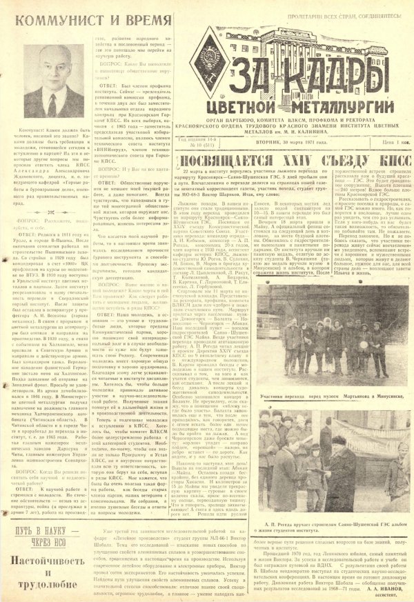 - Посвящается XXIV съезду КПСС : [своими впечатлениями делится участник лыжного перехода по маршруту Красноярск - Саяно-Шушенская ГЭС]. — С. 1.