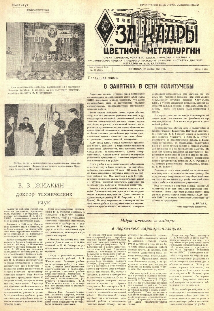 - Идут отчеты и выборы в первичных парторганизациях : [отчетно-перевыборное партийное собрание горного факультета (11 ноября 1971 г.)]. — С. 1.