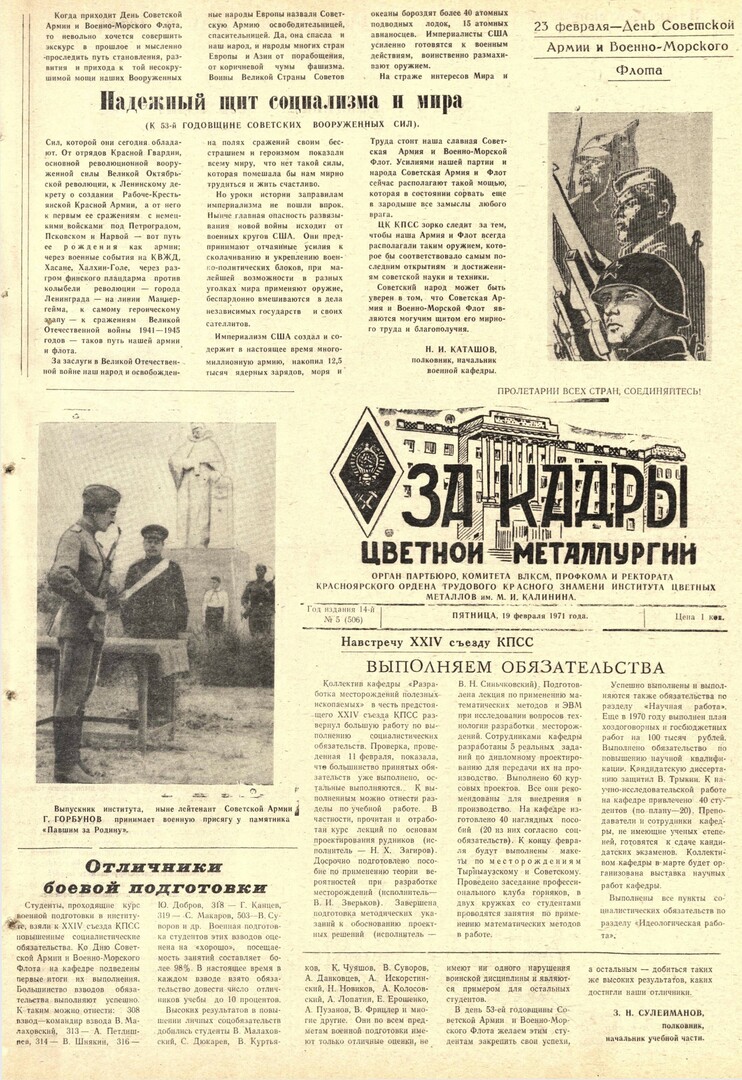 - Надежный щит социализма и мира : (К 53-й годовщине советских вооруженных сил). — С. 1.