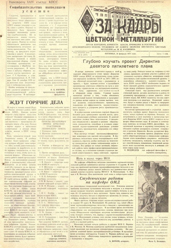 - [Фотография] : [дипломник И. Корытцев ведет исследование газового анализа при электролизе алюминия]. — С. 2.