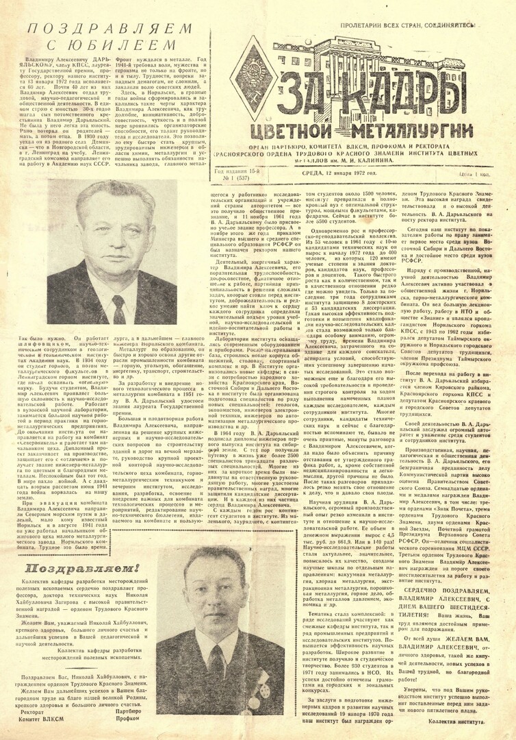 - Поздравляем с юбилеем : [60 лет - ректору института В. А. Дарьяльскому]. — С. 1.
