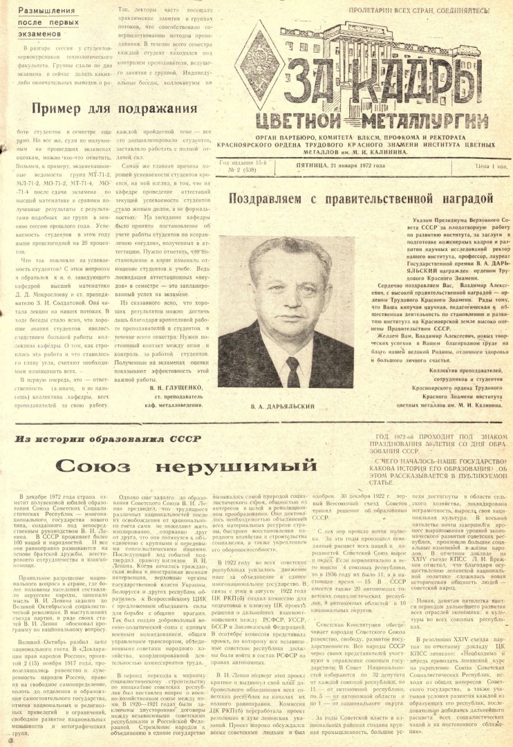 - Поздравляем с правительственной наградой : [ректора института - В. А. Дарьяльского, с награждением орденом Трудового Красного Знамени : фото к заметке]. — С. 1.