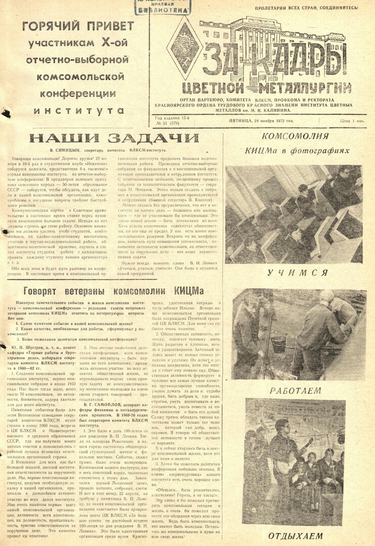 - Наши задачи : [задачи комсомольской организации института для обсуждения на отчетно-выборной конференции]. — С. 1.
