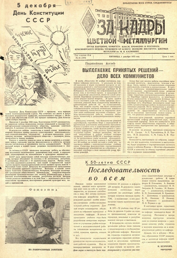 - Выполнение принятых решений - дело всех коммунистов : [обсуждение на партийном собрании института вопроса "О состоянии и мерах улучшения контроля за выполнением решений и постановлений вышестоящих организаций" (24 ноября)]. — С. 1.
