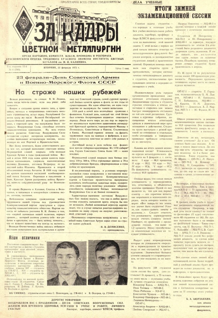 - Итоги зимней экзаменационной сессии : [на металлургическом факультете]. — С. 1.