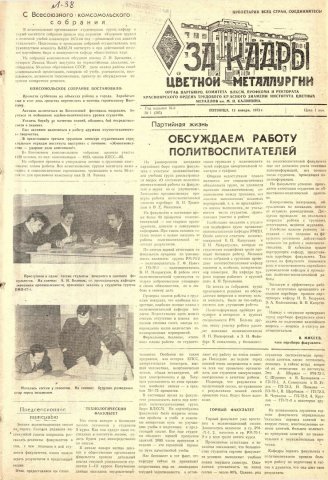 - Обсуждаем работу политвоспитателей : [на заседании партийного бюро горного факультета]. — С. 1.