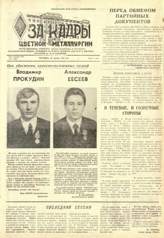 За кадры цветной металлургии : газета. 1973 г. № 3 (587) (26 января)выпуск журнала/газеты