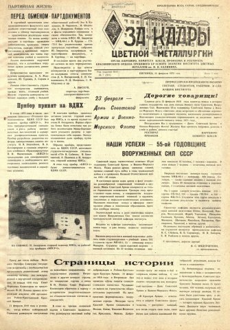 - Наши успехи - 55-й годовщине вооруженных сил СССР : [о вкладе в дело подготовки кадров для наших Вооруженных Сил коллективом преподавателей военной кафедры]. — С. 1.
